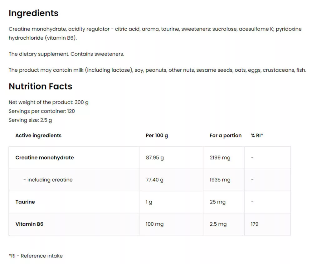 Properties of the ingredients contained in OstroVit Creatine Monohydrate: