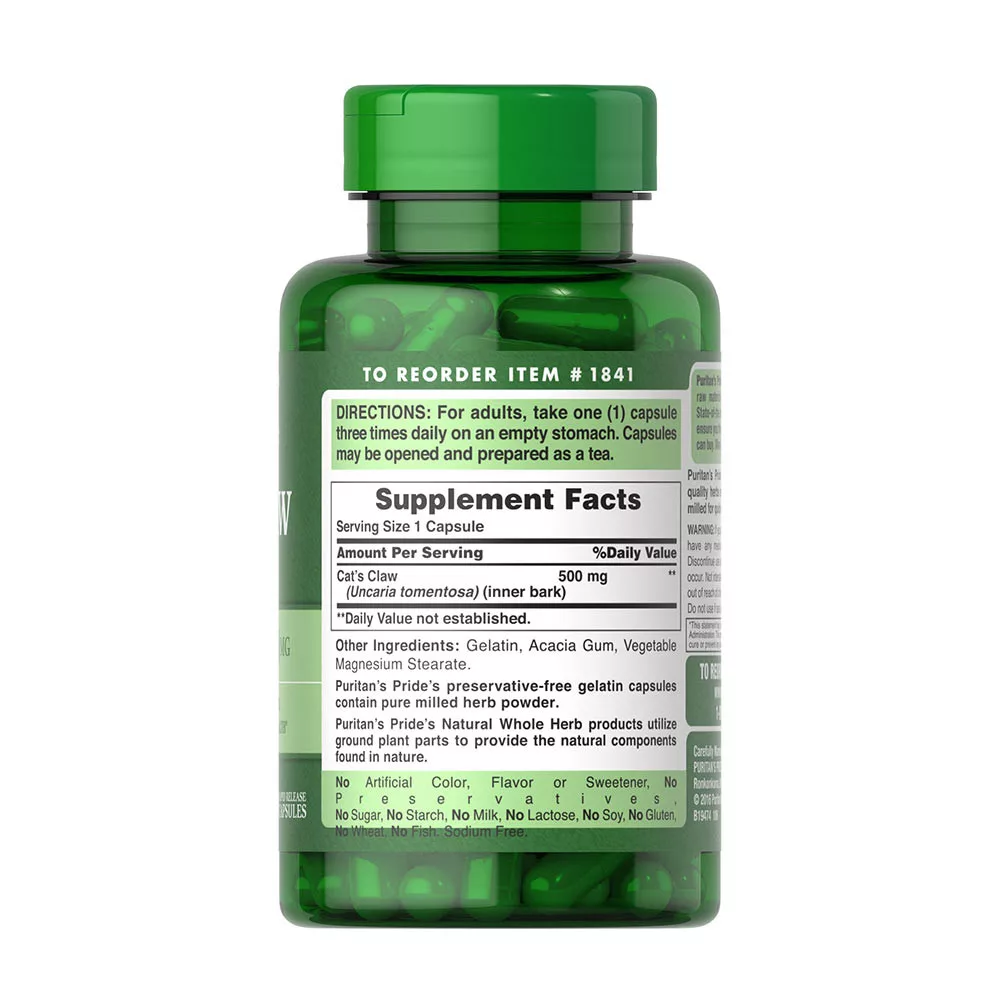 - Cat’s claw (Uncaria tomentosa) is a natural whole herb.